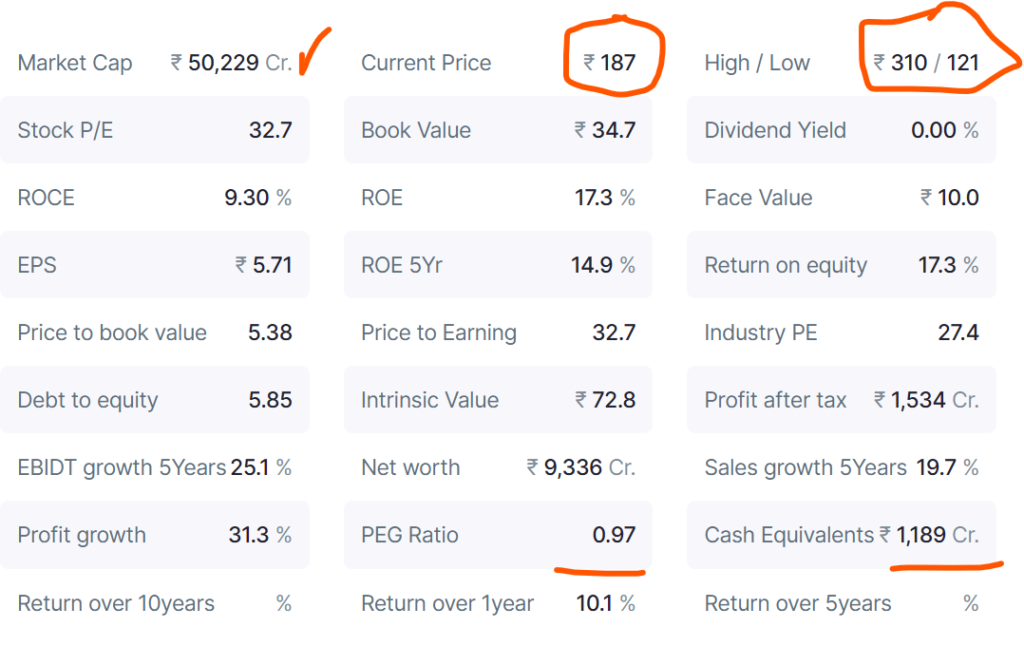 - P/E (Price-to-Earnings) अनुपात: यह अनुपात यह दर्शाता है कि शेयर का मूल्य आय के मुकाबले कितना है। यह IREDA के लिए पूरी तरह से सटीक नहीं हो सकता क्योंकि यह एक सरकारी वित्तीय संस्था है, लेकिन फिर भी यह निवेशकों के दृष्टिकोण को दर्शा सकता है।